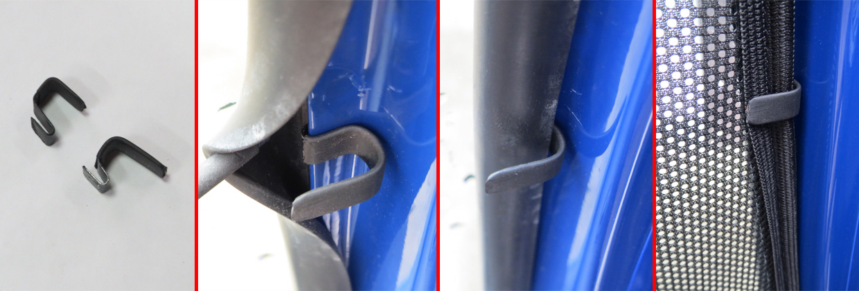 Izrađena je od ABS plastike, drži upornik-prečku na štitniku zadnjeg stakla (5. tj 3. vrata ili zadnje staklo na limuzini). Upornik na zadnjem štitniku je gumirana žica debljine 3mm koja je sa 2 žabice No.7 pričvršćena po sredini štitnika. Svrha upornika jeste da mrežicu drži zategnutom.